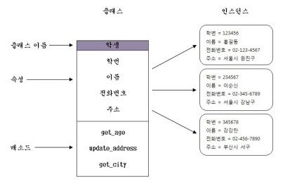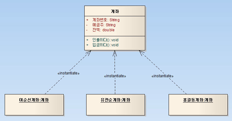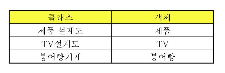 - object(instance): class의 내용을 메모리에 생성한 것(제품)
