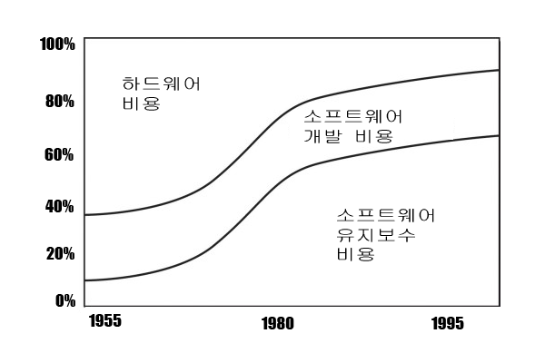 소프트웨어 규모의 대규모화, 복잡화에 따른 개발비용 증대