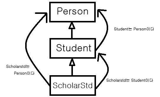 상속관계가 있는 클래스들은 자식클래스 is a 부모클래스의 관계로 정의될 수 있음