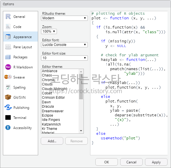 1.4.5 RStudio 설정