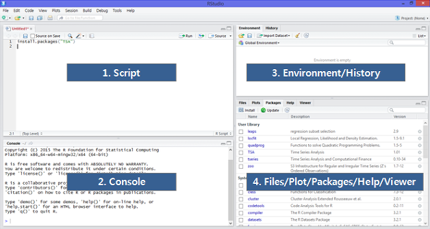 파일 목록, 그래프 출력, 패키지의 정보, 도움말 등