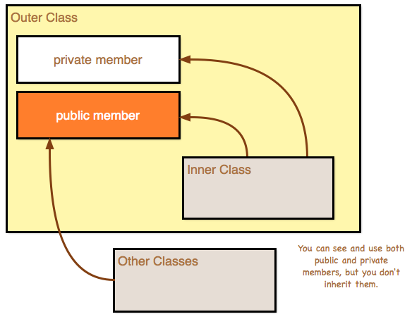 내부 클래스에서 외부 클래스의 멤버들을 쉽게 접근할 수 있다.