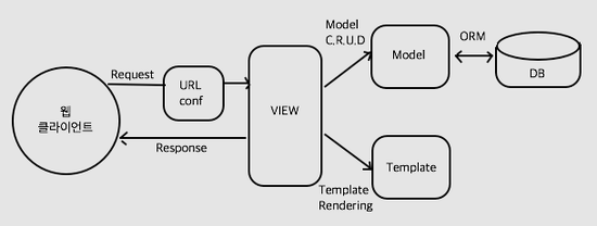 데이터를 처리한 후 결과를 템플릿에게 전달하는 코드 |
