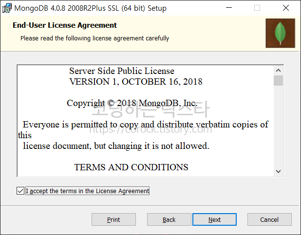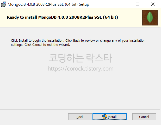 7. Ready to install MongoDB 4.0.8 2008R2Plus SSL (64 bit)