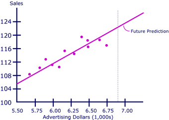 (예) 기업의 광고집행액(X)을 이용하여 그 기업의 매출액(Y)을 예측하는 모형