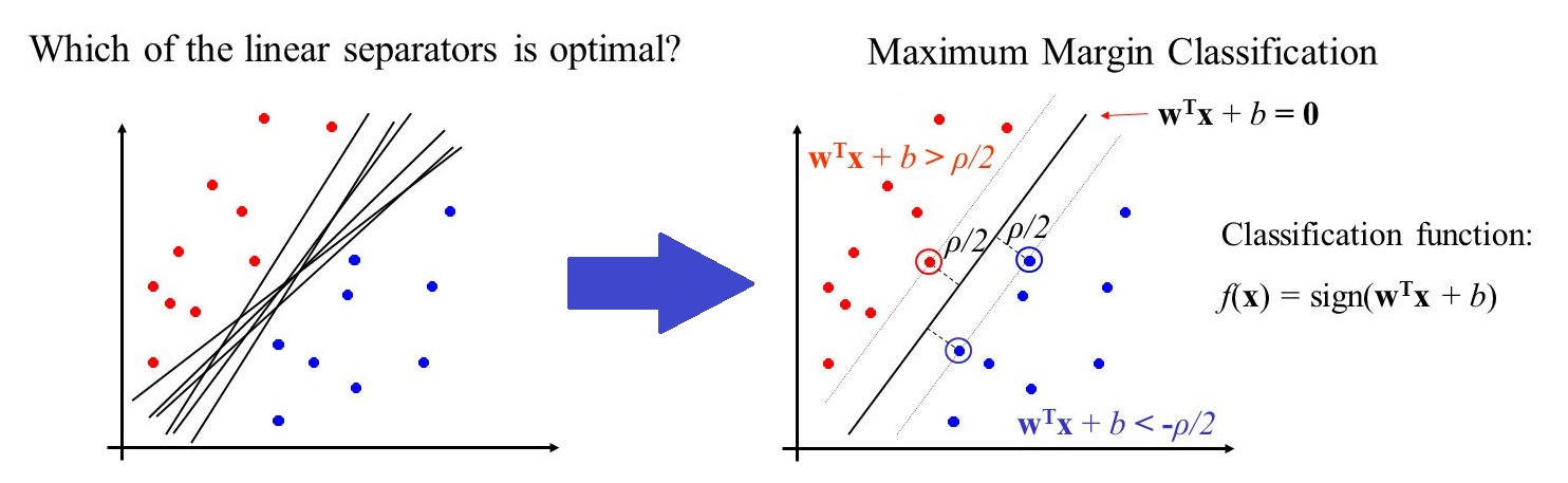 SVM은 두 범주 사이의 거리(margin)를 최대화하는 경계면을 찾는 기법