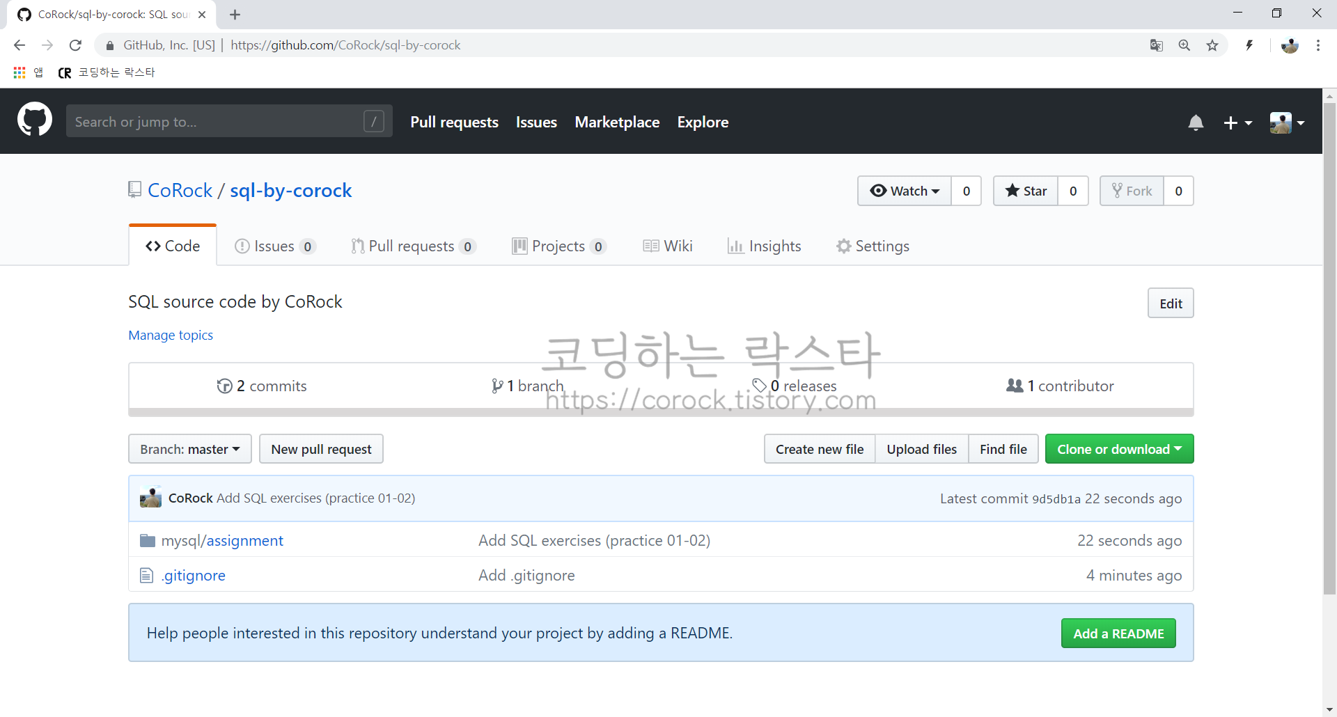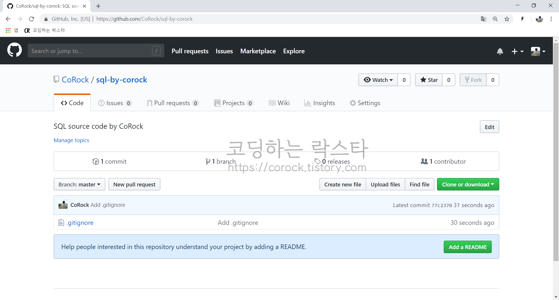 $ git remote add origin https://github.com/CoRock/sql-by-corock.git